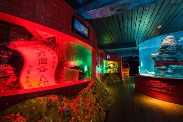 进入新展区,首先看到的是神秘莫测的龙船头,再往内就是充满中国古典气息的“深海秘境”啦~