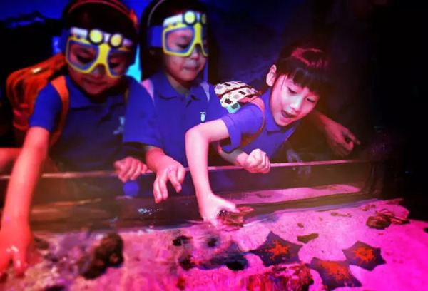 没错,池子里面可爱的小生物,红螺、海星、海参、寄居蟹等,都是可以摸摸的,不过要记得先洗手哦。